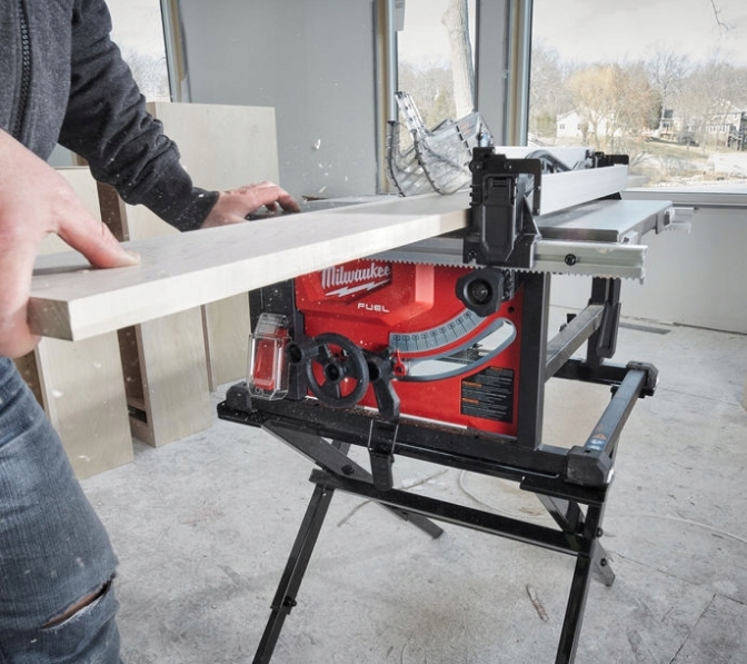 Первое, что можно заметить, — этот инструмент называется станком. То есть это совсем другой уровень применения аккумуляторов: на ручном инструменте они уже привычны, а на станках встречаются пока довольно редко. Причём специфика подобных станков такова, что их нередко эксплуатируют в продолжительном режиме в течение всего рабочего дня, например я его использовал чтобы изготавливать шкафы купе и другую мебель.Эта модель относится к серии М18 Fuel (то есть снабжена бесщёточным двигателем, контроль параметров зарядки и разрядки аккумуляторов производится электроникой). По мощности она сравнима с сетевой пилой с электродвигателем в 1800 Вт. По производительности — способна распилить до 600 футов (более 180 погонных метров) плиты OSB толщиной 18 мм на одной зарядке батареи 12 А*ч.