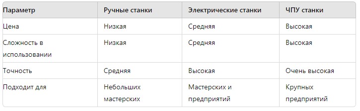 Таблица: Сравнение видов заточных станков