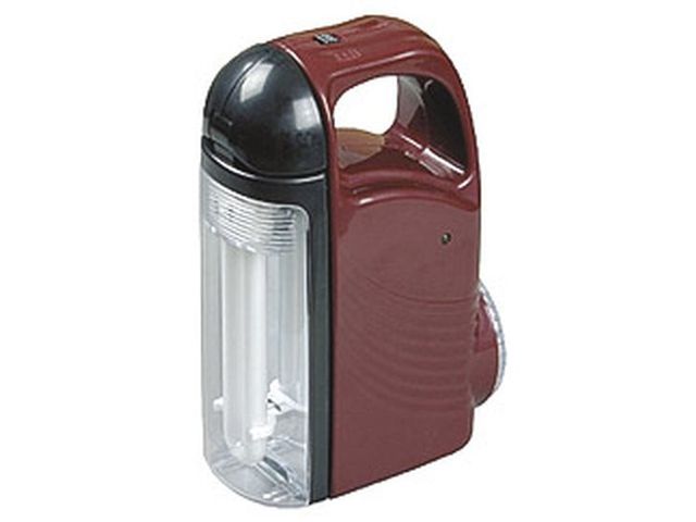 Патрон с люминесцентной лампой 9 Вт поворачивается на 30, 60, 90 градусов и отклоняется в сторону на 30, 60, 90, 120 и 150 градусов, то есть фонарь всегда можно поставить рядом с местом работы и развернуть отражатель так, чтобы он освещал рабочее место, но не слепил глаза. Свет у него широкий и ровный. На случай, если нужен интенсивный яркий и дальний свет с узким лучом, на другой стороне фонаря есть криптоновая лампа в глубоком отражателе, ее мощность 3 Вт.