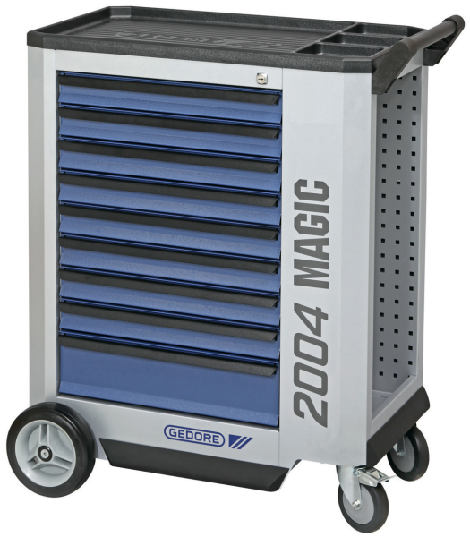 Тележка может поставляться и пустой, и уже укомплектованной набором из 321 инструмента Gedore в 27 пластиковых ложементах, включая наборы накидных, рожковых, шарнирных, торцевых ключей, отверток, пассатижей, инструмента для ремонта автомобилей.