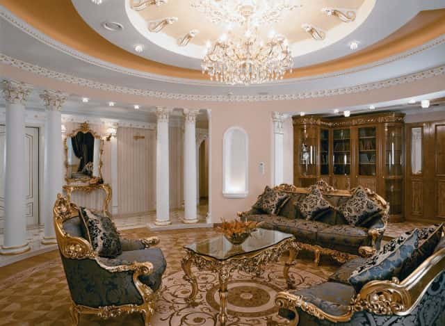 Цель этого стиля – донести до гостей и присутствующих важность помещения, сделать его официозным, и в то же время парадным. Цвета для этого стиля берутся главным образом бирюзовые, бежевые, кремовые, персиковые, молочные, и конечно же много золота. Тут часто встречаются изящные аксессуары, которые придадут законченность, и дают возможность жить в красивой обстановке.