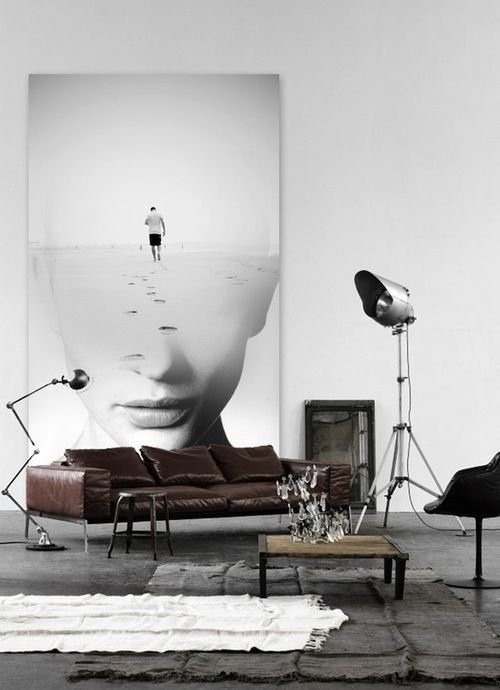 • вдохновляющие картины. Можно взять изображение прямиком из модного журнала или фотосессии, поместить его в увеличенном варианте на холст и, в результате, вы почувствуете, что сами являетесь частью фешн-индустрии. Другой вариант – вы желаете сделать интерьер более чувственным или «сказать», что в доме живет любовь. В этом случае как никогда кстати подойдет большая картина, на которой изображен трогательный или страстный сюжет. Еще один метод – если вы вдохновляетесь победами или творческим путем своего кумира – повесьте на стену его изображение, смотря на которое у вас будет просыпаться стремление к лучшему;