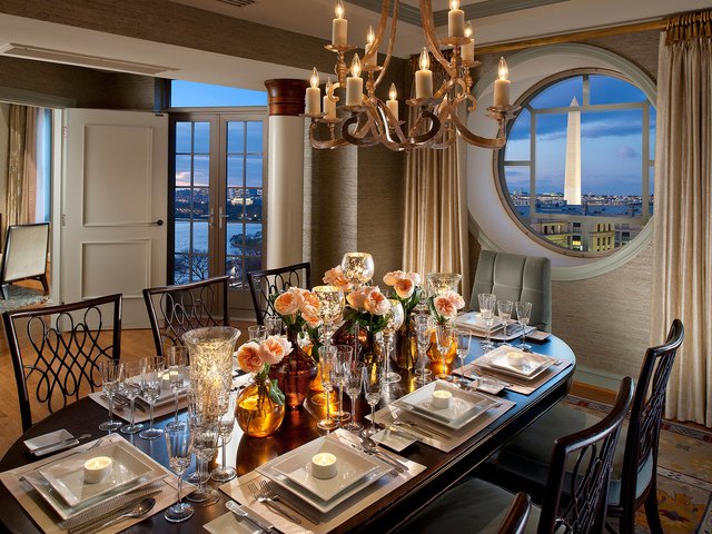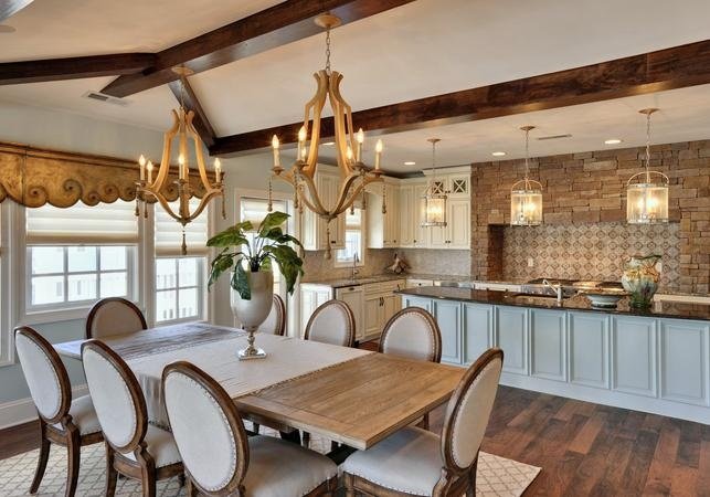 Если вы поклонник многочисленных гостей, или если вы любите чопорную атмосферу, то традиционные и формальные интерьеры столовой это то, что вы хотели бы иметь. Кремового цвета стены, круглый деревянный стол и белые кресла будут здесь основными достопримечательностями. Желтое освещение добавит старины, а цветочные композиции сделают комнату свежее и элегантнее. Удачно завершит композицию традиционной столовой изысканный фарфор.