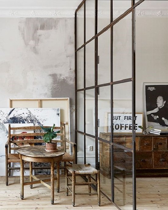 Зонировать пространство в стиле лофт можно при помощи отделочный материалов, мебельных изделий или уровней. Но строго кроме стен, так как это будет противоречить вышесказанному. Оптимальный вариант – установка стеклянных перегородок. Если помещение будет иметь простенки или капитальные перегородки, это лофт «превратится» в классическую квартиру, разве что с высокими потолками.