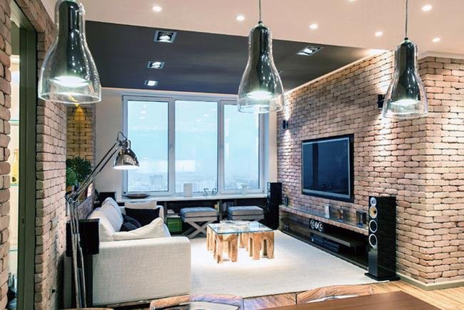 Наиболее оптимальный вариант помещения, которое можно оформить в стиле лофт – большое и просторное жилье, отличающееся высокими потолками. В таком жилье не используют перегородки, а отталкиваются от зонирования, где отделяют одну часть от другой при помощи мебели, ширм или частичных перегородок. В итоге, гостиная от кухни имеет лишь визуальное разграничение, при этом полезная площадь жилья не уменьшается.