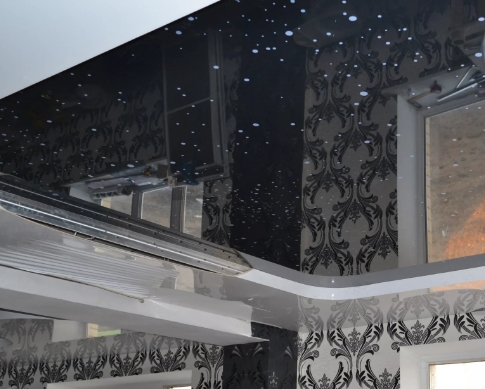 Наиболее подходящим вариантом для натяжных потолочных конструкций являются компактные изящные светильники. Их современные разновидности обладают многообразными цветовыми решениями, однако лучше всего в комбинации с натяжным полотном смотрится серебристый металлик. Люстра, имеющая отражающий элемент, маленькие кристаллы и множество лампочек, обладает отличным декорирующим эффектом.