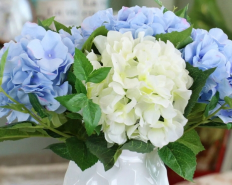 Гортензия, узнаваемая по одревесневшим стеблям и маленьким цветкам, радует глаз. Смешение всех его цветов (белого, розового, голубого) позволяет любоваться цветами с другого ракурса. Выбор цветочной композиции исключительно на основе гортензии — хорошая идея. Это действительно один из самых красивых цветущих кустарников.