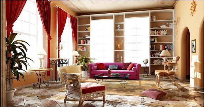 Сдержанная цветовая гамма подчеркивается ярким акцентным пятном. Белые или нейтральные тона становятся фоном для аксессуара цвета алой губной помады или бутылочного стекла. Яркое пятно может быть всего лишь аксессуаром: вазой, подушкой или картиной на стене.