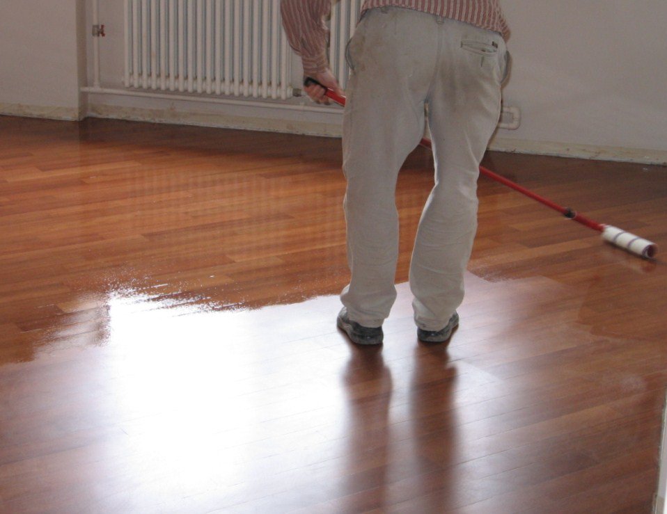 Данный лак заполняет поры дерева и создает достаточно толстую прослойку сверху, препятствуя истиранию, при этом не сильно меняет цвет поверхности, что в некоторых случаях очень важно. К температуре устойчив, поэтому его без опаски можно использовать и на полах с подогревом, которые стали популярны в последние годы.