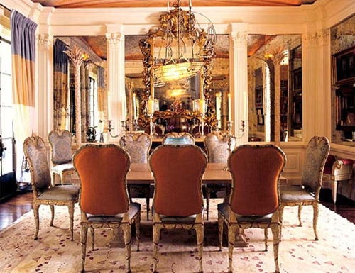 Интерьер будет неполным без обязательных деталей: картины, канделябры, хрустальные люстры и светильники, дорогая фарфоровая посуда и серебро. Светильник может быть и с тканевым абажуром, это еще больше подчеркнет приверженность стилю, как и букетики засушенных цветов в миниатюрных вазочках (отлично смотрятся у камина и на журнальном столе).