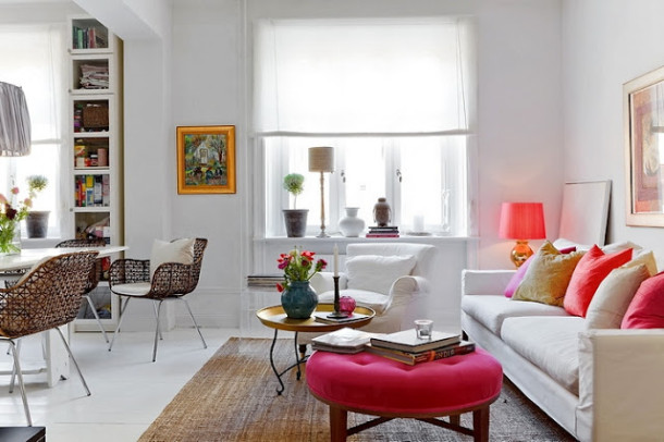 Совет № 4: яркие акценты. На светлом фоне стен легко создавать яркие акценты, которые уберут из интерьера «стерильность» - это может быть одна стена, оклеенная яркими обоями, настенный декор, картины, панно или принты. Боитесь переборщить? Тогда вам помогут специалисты из rezenko.com.ua.