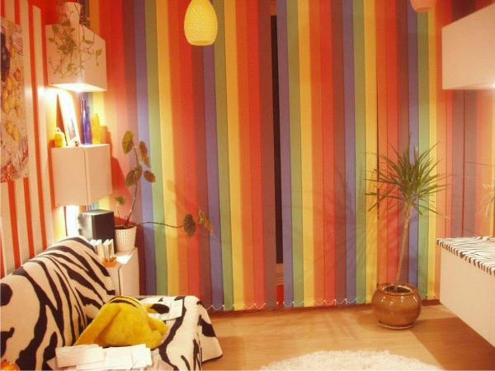 На жалюзи может быть нанесен любой рисунок, соответствующий дизайну и настроению комнаты или подобран определенный цвет. Сейчас очень популярны фотожалюзи, которые хорошо смотрятся именно на вертикальных полосках.