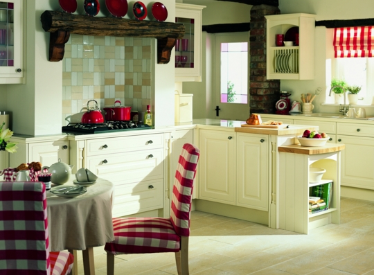 Шкафы и мебель станут основной частью будущей кухни, если речь идет о деревенском стиле. Для мебели и шкафов стоит выбирать такие породы дерева, как вишня и орех. Шкафы можно частично оклеить обоями, чтобы привести их в соответствие со стилем кантри, но не стоит использовать обои для стен, поскольку это сделает интерьер перегруженным.