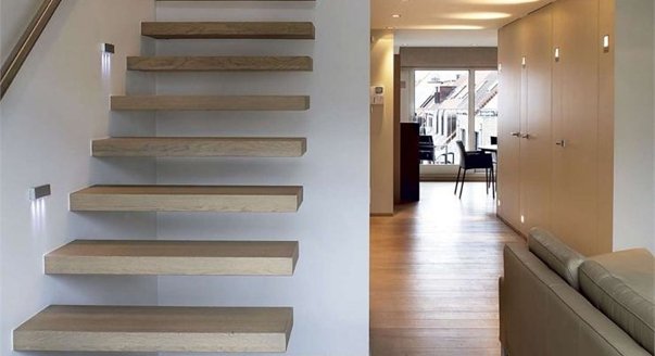Существуют также встроенные подвесные светильники, которые можно «вставить» в сами стены. Они хоть и просты в установке, но все же требуют «глубинного монтажа» (сейчас этот показатель – 4 см). Вмонтировать такой светильник возможно только при наличии фальш-стен, гипсокартонных перегородок или панелей. Лучи встроенного светильника можно направлять благодаря подвижной головке.