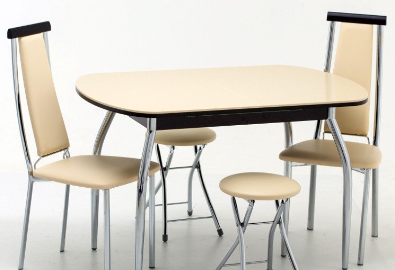 Если у вас кухня небольших размеров, то не рекомендуется для нее приобретать стулья со слишком широкими сидениями или широко расставленными ножками. Для маленькой кухни оптимальны складные стулья или табуреты. Конечно, зачастую внешний вид табуретов достаточно скучен, однако, их можно украсить при помощи чехлов и «превратить» в симпатичные пуфики. Что касается табуретов, изготовленных из дерева, то их можно видоизменять как душе угодно, например, окрашивать, обивать, надевать чехлы и так далее.