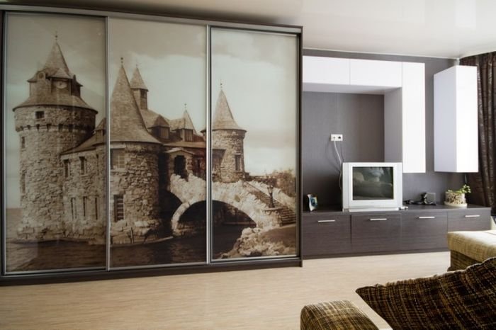 • шкаф-купе с фотопечатью. Как только изобрели фотопечать, ее туже стали использовать в интерьерных решениях. Концепция дизайна всегда приветствует такое нововведение, за счет которого можно не только украсить внешний вид помещения, но и удивить гостей. С помощью поверхности шкафа, на которое наносится фотопечать, можно отразить свои эстетические пристрастия или использовать ее как элемент украшения интерьера. По сути, фотопечать создана для того, чтобы украсить зал или любую другую комнату.