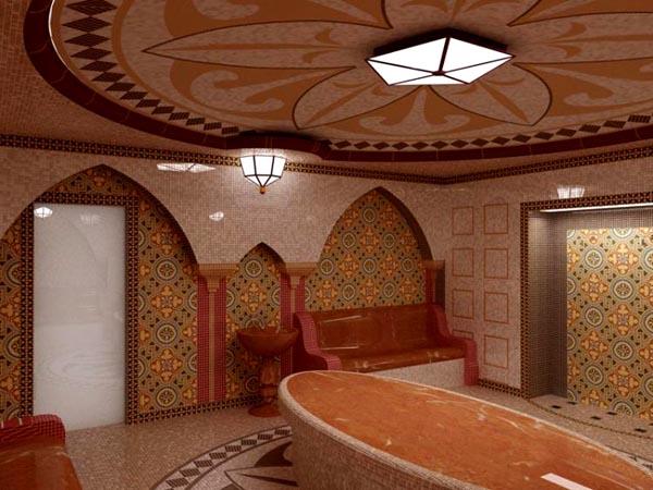 Хамамы впечатляют богатством внутреннего убранства: лежаки из натуральных камней, дорогие мозаики с восточными узорами, купольные потолки, имитирующие звездное небо, позолоченные аксессуары. Безусловно, в такой атмосфере приятно отдохнуть от трудного рабочего дня.