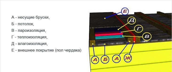 ✔ теплоизоляционный слой ничем не защищается, поэтому такой вид потолка нельзя использовать в качестве чердака;