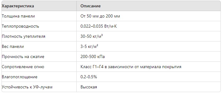 Для более детального понимания, давайте рассмотрим таблицу с основными техническими характеристиками фасадных термопанелей.