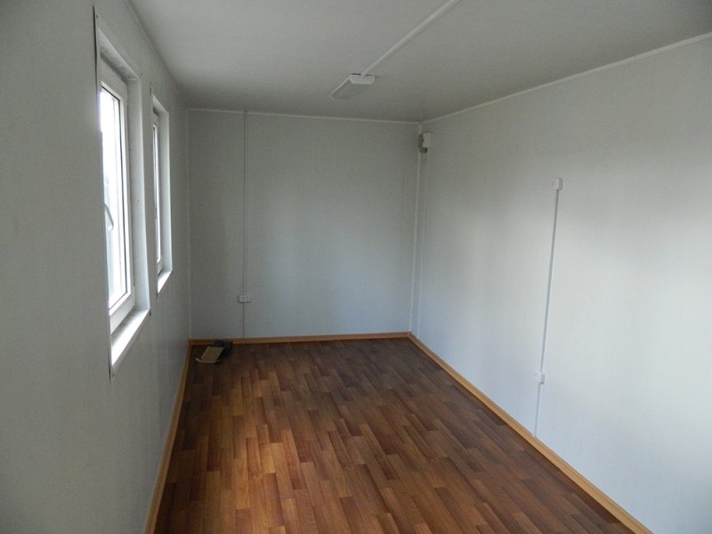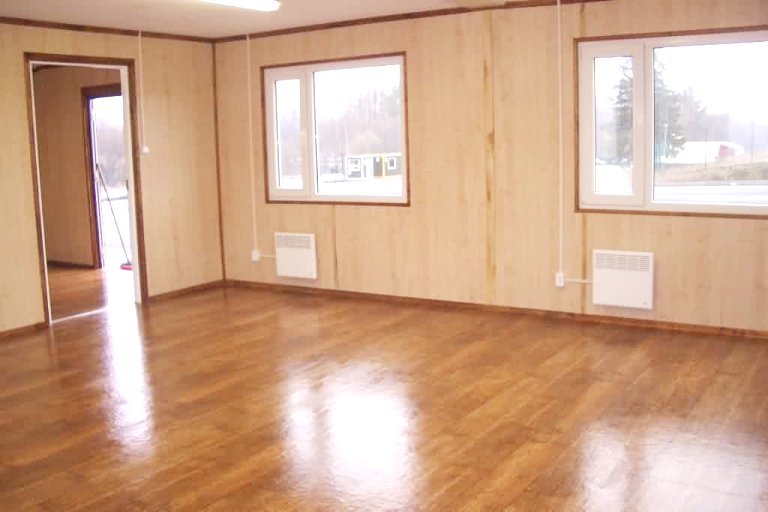 Для отделки стен зачастую используется МДФ, пластиковая вагонка и древесина. Те же материалы, а также ДВПО, фанера, оргалит или сайдинг могут быть использованы с целью создания внутренних перегородок для модульного здания. Потолок облагораживается деревянной вагонкой, ПВХ-вагонкой, пластиковыми панелями или гипсокартоном. Если необходимо обеспечить отделку пола, то стоит обратить внимание на такие материалы: фанера и линолеум, который настилается поверх пола из фанеры.