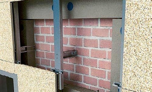 Расстояние от облицовки до основания, а также схема размещения кронштейнов и профилей на фасаде здания.