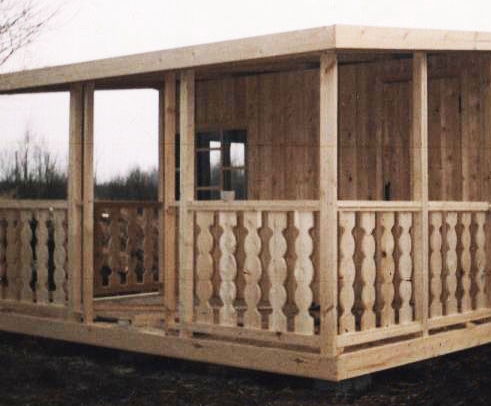 - Далее возводятся стены, и устанавливается печь. Скрепление деревянных элементов конструкции следует делать с помощью саморезов и шурупов. Для выполнения балочных конструкций понадобятся металлические уголки, для обшивки стен доски, гипсокартон или вагонка. Зону печи желательно выложить кирпичом. Чтобы жар и дым могли свободно покидать рабочую зону нужно на этапе строительства побеспокоиться об установке вытяжной трубы. Печь на дровах не только подчеркнет уникальность интерьера, но и существенно сэкономит энергоресурсы.