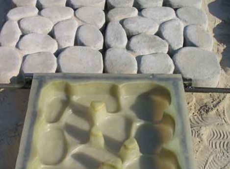 Затем готовится раствор бетона, заливается в формочки и выравнивается. После затвердевания раствора, формочки убираются. Щели между плитками можно засыпать песком или залить жидким раствором. При выполнении работы крайне не желательно торопиться. Раствор должен хорошо схватиться, обычно для этого достаточно 5-6 дней, после чего плитку оборачивают в полиэтилен.