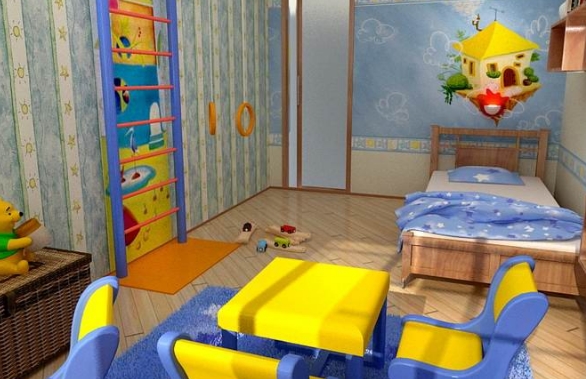 В первую очередь в детской должно быть уютно. Не нужно никаких ярких красок, пестрых обоев и очень много маленьких элементов декора. Это может надоесть не только ребенку, но и вам. Если хочется яркости, сделайте одну игровую зону или какой-то яркий элемент. Там где кровать цвета должны быть спокойными. Если вы хотите сделать комнату с мульт героями, не изображайте их на стенах или мебели, у ребенка быстро меняются вкусы и ремонт может оказаться совсем не интересным. Лучше сделайте покрывало, наволочки для подушек с любимыми героями, опять же игрушки дополнят интерьер. Как только предпочтения поменяются, вы смело замените все на новое и у ребенка будет море радости.