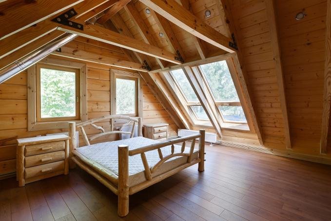 • можно применять уникальные и оригинальные решения интерьера отталкиваясь от угла кровли, а также монтировать мансардные окна;