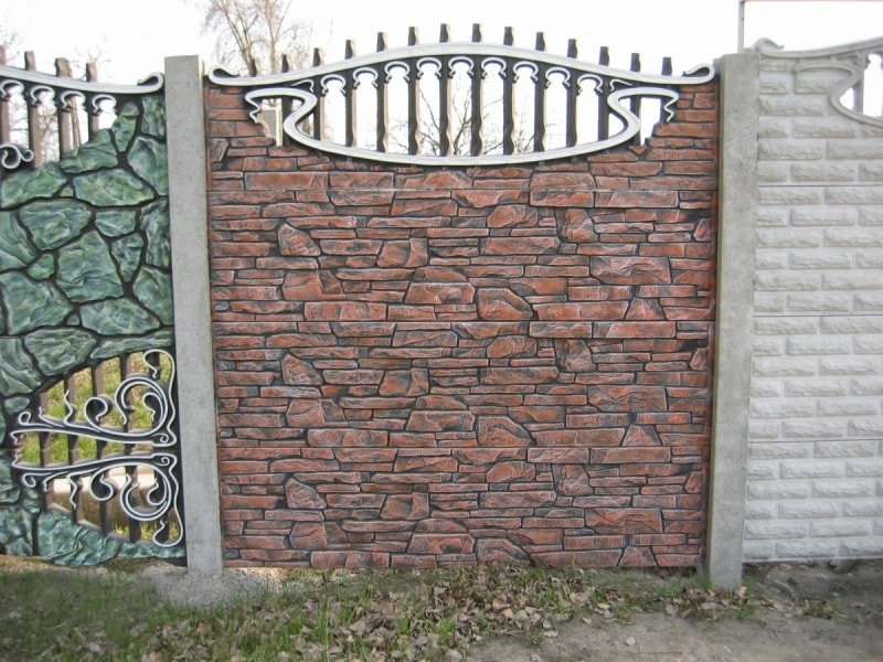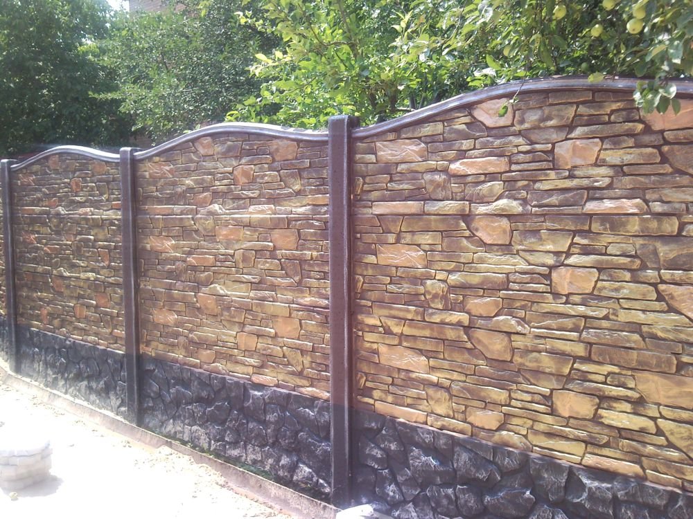 Стоит отметить, что поверхность бетона можно окрасить в любые оттенки с той целью, чтобы забор лучше гармонировал с дизайном дома. К тому же дополнительно применяются специальные мастики и составы, улучшающие свойства материала.