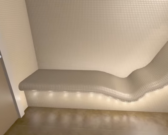 Натуральный камень никогда не выйдет из моды, но современные технологии берут свое. Сейчас самый популярный материала для сидений и лежаков – это вспененный полистирол. Он отличается хорошей влагостойкостью, паропроводностью, легкостью эксплуатации и относительной экономичностью. Из него просто вырезать даже самые сложные конструкции. К тому же, изделия из пенополистирола отличаются долговечностью и простотой в уходе. Для улучшения теплопроводности внутрь монтируют теплый пол. Это качественно улучшает действие всего комплекса процедур.