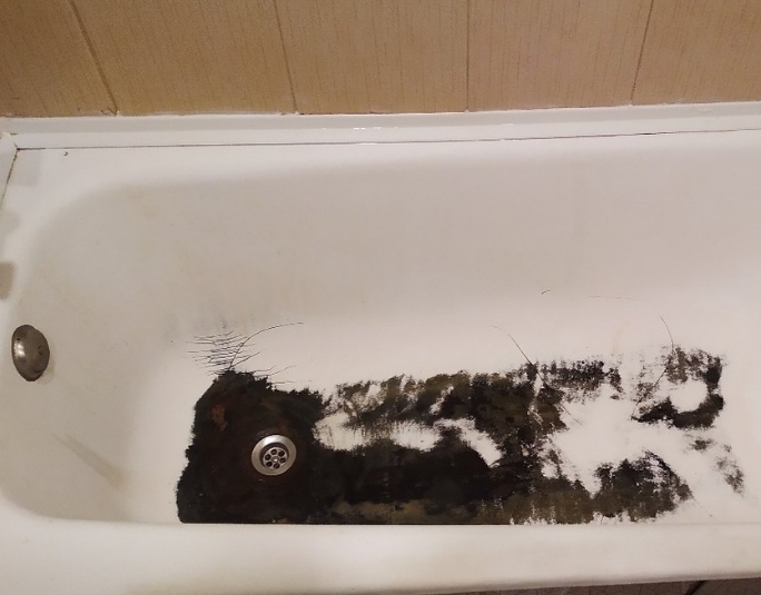 - Поверхность ванны необходимо очистить щеткой и порошком. Смывать не нужно.