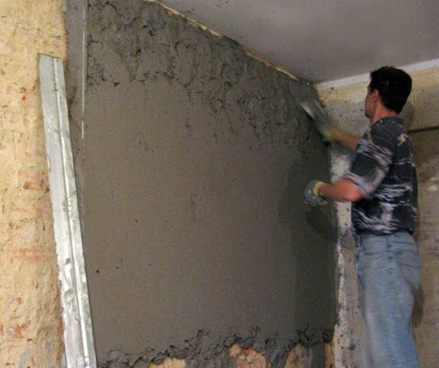 Значительные дефекты основания при помощи одной только шпатлевки исправить не удастся. Потому возникает потребность использовать еще и штукатурку. Данный материал наносится непосредственно на кладку. За счет такого покрытия можно не только выровняться стену, но дополнительно увеличить тепло- и звукоизоляционные характеристики помещения.