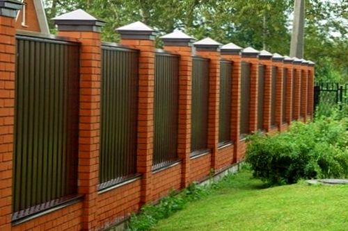 Также с домами очень хорошо смотрятся кирпичные ограды. Если Вы подбираете заграждение для загородного участка, в таком случае пригодятся практически всевозможные материалы, все находится в зависимости от материальной обеспеченности хозяина и его предпочтений в дизайне. Это может быть: ограждение, соединенный из лозиновых прутьев, сеть рабица, шифер, дощатый либо живая плетень с кустов.