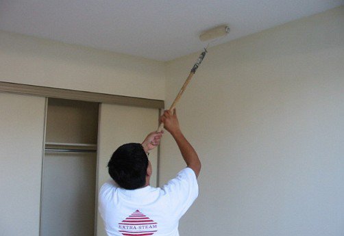 Наносится грунтовка валиком или кистью, затем аккуратно вытягивается по всей поверхности. Иногда используют краскопульт, если консистенция жидкая и комнатная температура не превышает 30 градусов тепла.