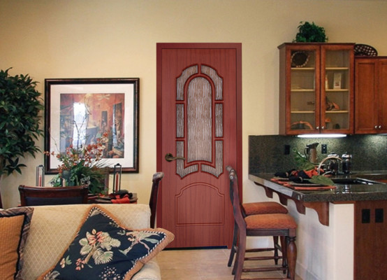 Также наш магазин может предложить приобрести комнатную дверь эксклюзивного характера, сделанную с использованием МДФ. Мы располагаем замечательными дверями, в основе которых лежит цельный массив древесины. Такая продукция отделана шпоном и внешне выглядит очень эстетично. Кажется, что такой элемент декора выполнен из красной или палисандровой древесины, дуба или венге. Все витражи являются оригинальными в отношении дизайна. Рисунки подобраны индивидуально под заказ в полном соответствии с интерьером всего помещения.