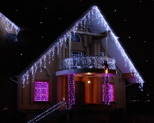 Но и это еще не все! Светодиодные гирлянды по форме делятся на дюралайт, сетку, бахрому, лучи и нити. Например, последняя прекрасно будет смотреться как украшение новогодней елки, «луч» - украсит множество деревьев, «бахрома» - устанавливается под крышей, «дождь» - на козырьках домов и в оконных проемах.