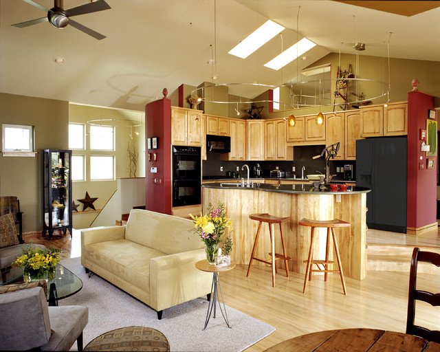 • Удобен такой дизайн для семей с маленькими детьми – мама может готовить пищу, в это время и ребенок всегда на виду