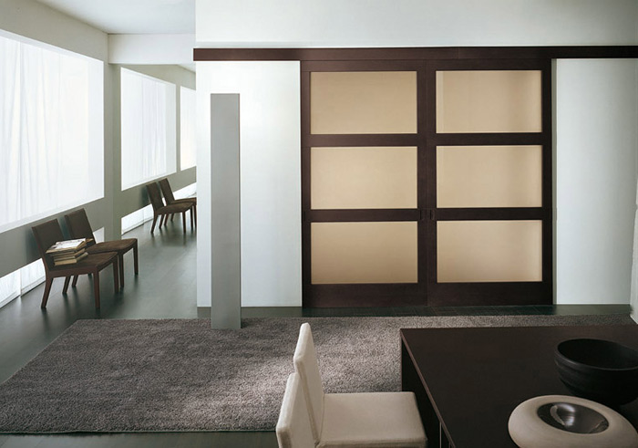 Посредством раздвижных дверей можно легко преобразить любое помещение и придать ему более современный вид. Их можно увидеть как в жилых квартирах, так и в офисах. Кроме этого, раздвижные перегородки применяются в душевых и гардеробных комнатах, а также для разделения производственных помещений.