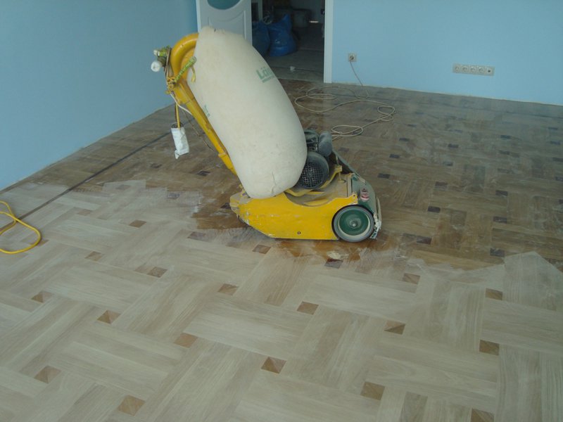 Целью плоскошлифовальной машины является убирание полос при отшлифовке паркета. Не стоит забывать о шпатлевание поверхностных щелей. В случае изношения половицы следует ее перевернуть.