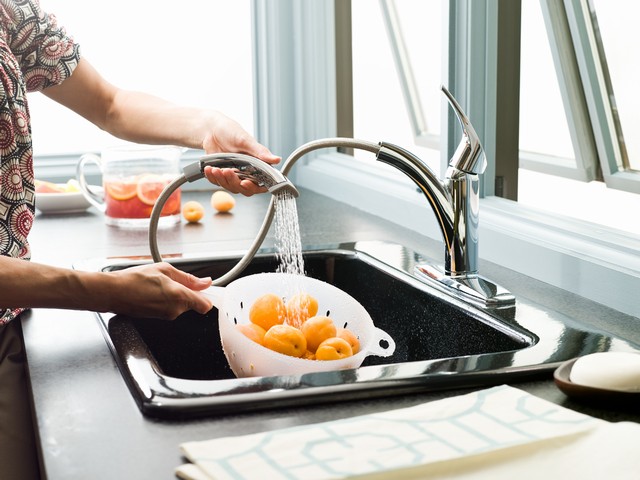 Поэтому для кухни советуют покупать однорычажный смеситель, так как с ним легко обращаться любой частью руки. Это позволит избежать отмывания от пятен жира или муки, которые непременно появятся на вентилях. В кухню стоит установить поворотный излив смесителя. Это позволяет расширить функциональность мойки, с лёгкостью ставить в мойку большие кастрюли.