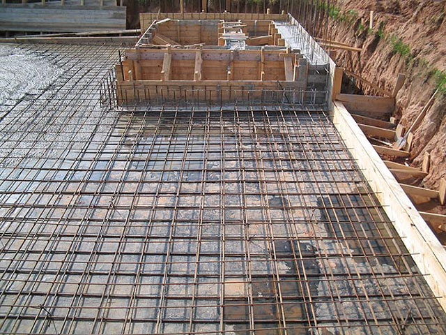 Для этого железные стержни сваривают в единую систему на подобия сетки. После того как опалубка установлена начнём заливку бетона. Залит массу бетона надо за один раз и одним слоем. После того как залили бетон его следует тщательно утрясти и оставить застывать.