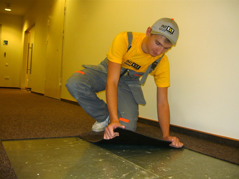 Стыкуют полотна внахлест, после чего место стыка прорезают насквозь строительным ножом, под местом стыка приклеивают скотч и соединяют полотна. После подготовительных работ защитное покрытие со скотча снимают и приклеивают ковролин. Затем лишнее обрезают и прикрепляют плинтус. А в следующей статье мы обсудим как установить sial-nvf.ru. Читайте наш сайт, будет интересно!