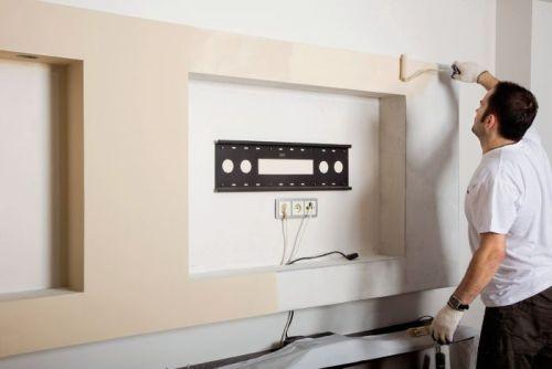Итак, приступим непосредственно к работе. Чтобы сделать нишу из гипсокартона вам понадобятся профиля для него (они бывают самых разных видов) и сами листы гипсокартона. Сначала необходимо сделать разметку. Для того, чтобы правильно нарисовать расположение телевизора, его необходимо повесить на стену, чтобы точно можно было определить размеры ниши, ее глубину и периметр.