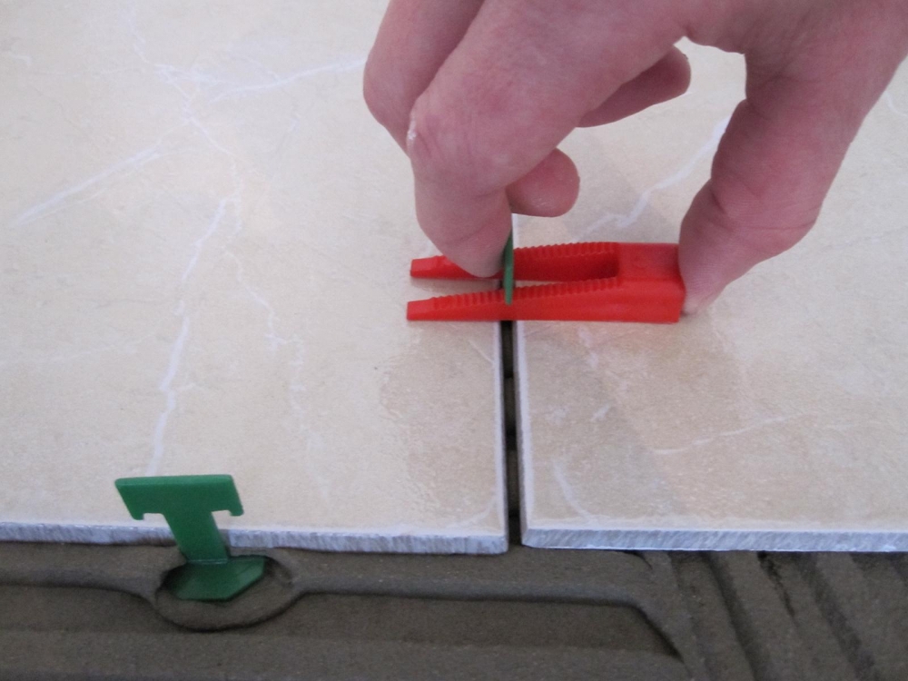 Зажим используется всего раз (после этого он становится непригодным), а клин можно применять многократно. Система не даёт плитке «проседать» при высыхании клея, обеспечивает равномерные расстояния между элементами укладываемой поверхности и выравнивает их по одной плоскости. Использование её возможно при температуре выше +5 градусов. При меньшей температуре возможно некачественное взаимодействие между клеящим составом и укладываемым материалом.