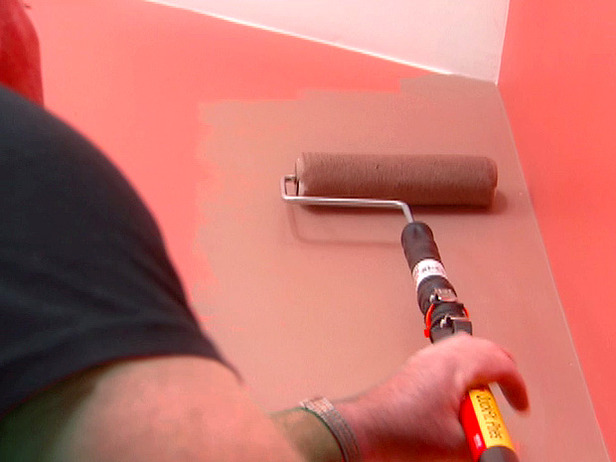Движения валика должны быть строго вертикальными, наклонов быть не должно. Не жалейте краски для валика. Те места, куда валиком подобраться сложно (это углы между стенами или между потолком и стеной), отводятся простой кистью. Будьте осторожны и не запачкайте пол. Если пол «чистовой», то его можно застелить газетами или полиэтиленовой плёнкой.