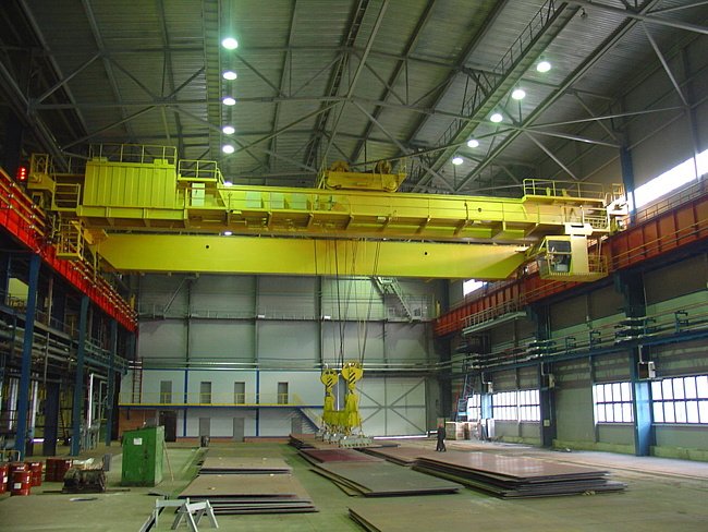 Мостовые краны используют в главных залах на работающих гидроэлектростанциях. Их рабочая грузоподъемность вспомогательной балки 20т, основной, соответственно- 100т. В машинных залах электростанций эксплуатируются мостовые краны, с подъемом вспомогательной балкой до 100т, на основную нагрузка идет в 4 раза больше.