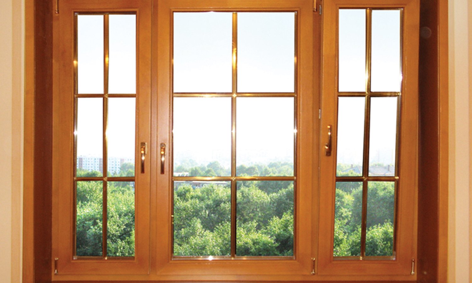 Стеклопакет деревянного окна идет вместе с клееным трехслойным брусом (данный вид лучше всего рассчитан на сильный мороз, а не большой вес позволяет фурнитуре поддерживать всю конструкцию). Также возможна установка специальных энергосберегающих стеклопакетов, заполненных инертным газом.
