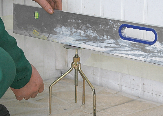 Сначала необходимо уложить маяки вдоль помещения, предварительно подогнав их по размеру, если есть такая необходимость. Теперь в ряд шлепками необходимо нанести раствор небольшими частями, с расстоянием между каждым около двадцати сантиметров. Поверх нанесенного раствора укладываются маяки, и за счет вдавливания их в смесь, при помощи уровня выравниваются. После того как маяки слегка схватились, пустое пространство между маяками и поверхностью пола заполняется тем же раствором. После этого, маяки оставляют до полной фиксации с полом.