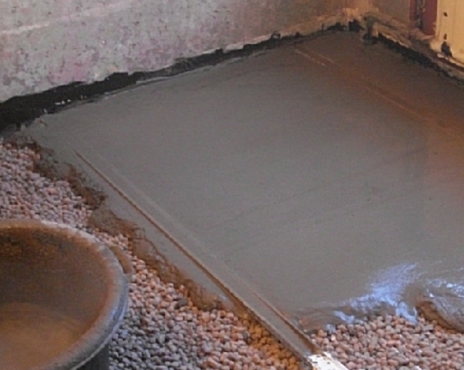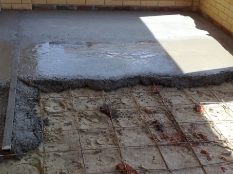 Готовую смесь, небольшими частями распределяем на поверхности пола, разравнивая её при этом лопатой или же специальным вибратором. Важно чтобы поверхность была плотно заполнена без пустот и щелей. Пока пол не застыл его нужно выровнять. Делают это при помощи так называемого правила. Его смачивают в воде и поступательными движениями к себе выравнивают поверхность по разметке, удаляя при этом излишки бетона. После полного выравнивания дайте бетону застыть. Затем оставьте пол высыхать на 3-4 недели, при этом периодически смачивая его водой. Это убережет его от трещин и деформации. Завершающим этапом будет нанесение тонкого слоя цементного раствора поверх бетона. Он сделает поверхность не только более ровной, но и крепкой.